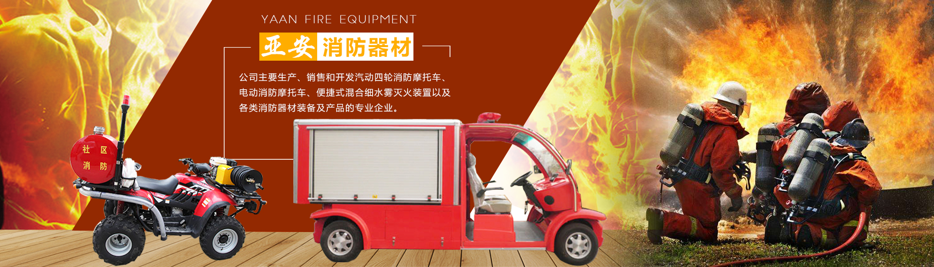 公司主要生產(chǎn)、銷售和開發(fā)汽動四輪消防摩托車、電動消防摩托車、便捷式混合細(xì)水霧滅火裝置